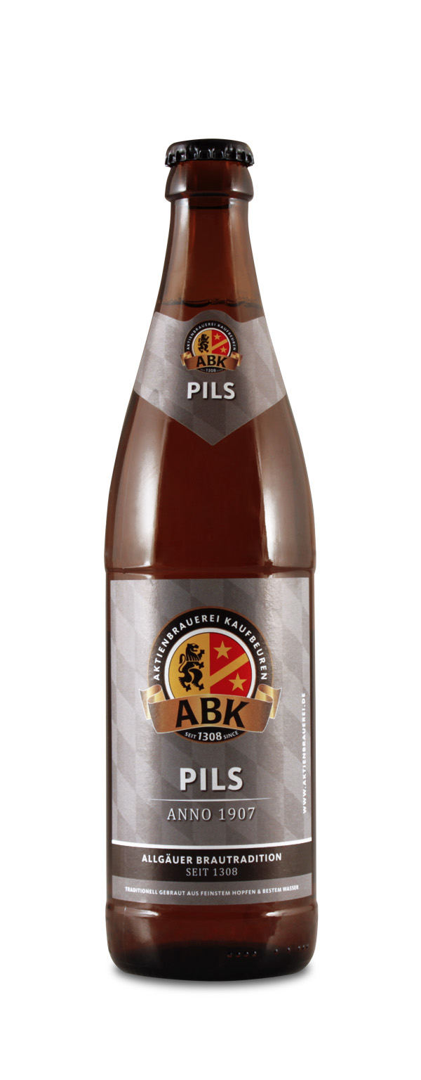ABK Aktien Pils "Anno 1907" wird nach bayrischer Art gebraut. Das untergärige Vollbier weist schön balancierte Anflüge von Hopfen und Malz auf und erstrahlt in einem schönen Gelb mit einer stabilen Schaumkrone. Es stammt aus der Aktienbrauerei Kaufbeuren, der ältesten noch stehenden Brauerei Schwabens.