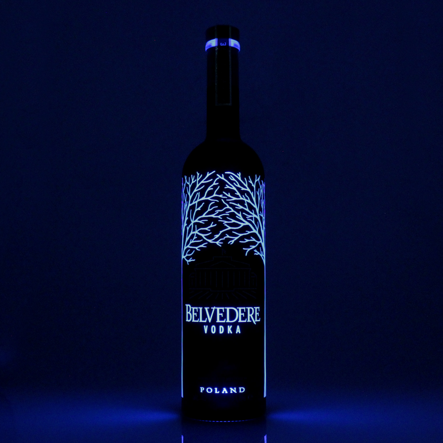 Belvedere Vodka Midnight Sabre ist eine Sonderedition der polnischen Marke, die als beleuchtete Flasche mit schwarzer Ummantelung daherkommt. Über Knopfdruck leuchtet ausschließlich das Flaschendesign. Der Inhalt ist der originale Belvedere Vodka, der vierfach aus Roggen destilliert wird. Dadurch erhält er eine weiche und glatte Konsistenz mit süßlich-fruchtigen Aromen von Zitronen.