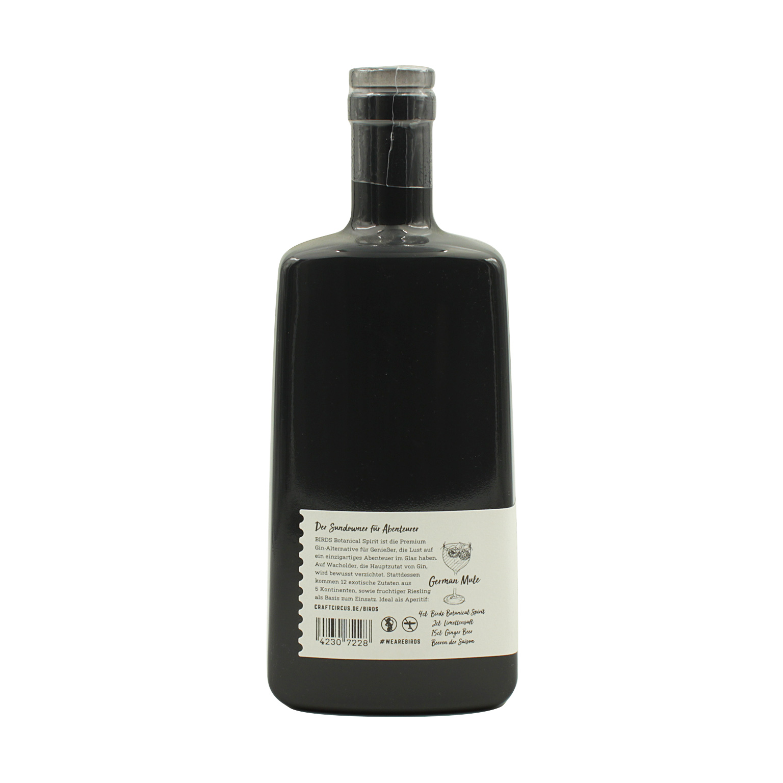 Birds Adventure can be described as a kind of hybrid between Riesling and Gin. The distillate is produced on the basis of a high-quality Riesling, which is then flavoured with 12 organic botanicals. Black currants, apples, oranges, primeval forest pepper, cloves, star anise, liquorice, nutmeg, eucalyptus and more form its complex taste.