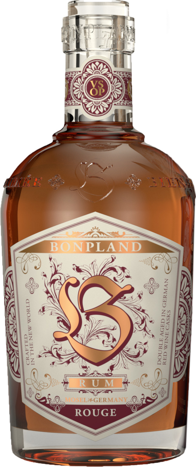 Bonpland Rouge VSOP is an impressive blend from distillates originating in Nicaragua, Trinidad, Jamaica, Guyana and Guatemala. During the last aging process, the blend develops its amazing aromas while resting in Pinot Noir barrels from a VDP vineyard in the German Palatinate region. It offers well-balanced notes of chocolate, raisins and red berries, with some amazing hints of wood and tannins mellowing out the finish.