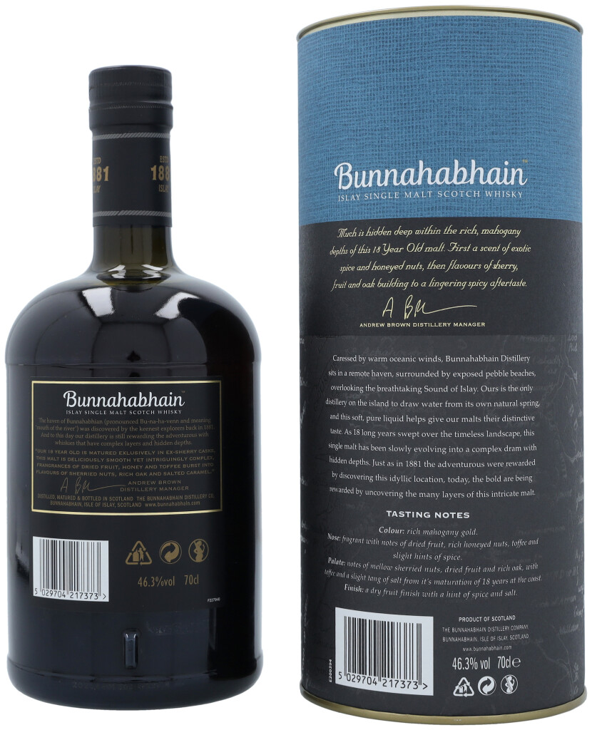 Bunnahabhain 18 Years + GB 0.7L (46.3% Vol.)