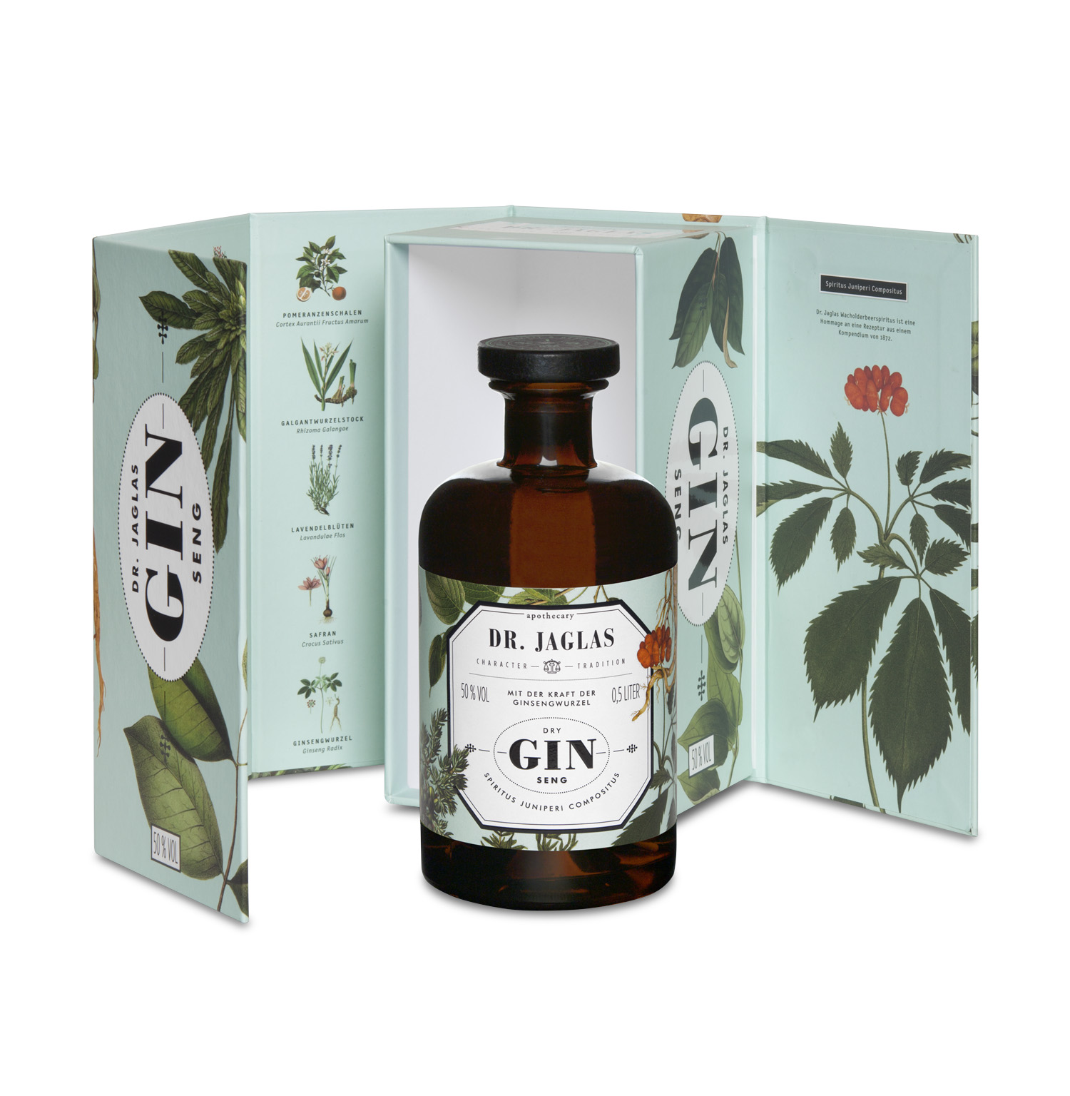 Dr Jagla's Gin-Seng is a 50% vol. gin marries the flavours of ginseng and juniper. For this unique gin, the Jagla family apothocary drew inspiration from the original recipe for Spiritus Junipert in the 1872 German pharmacopoeia, bringing together a combination of juniper, gentian, centaury, bitter orange, white turmeric, ginger, chinchona, cardamom, galangal, cinnamon, cloves, camphor, nutmeg, valeriana, citronella, saffron, angelica root, and lavender. The brand new herbal concoction bears some similarity to Dr Jagla's ginseng elixir, already available on the market.