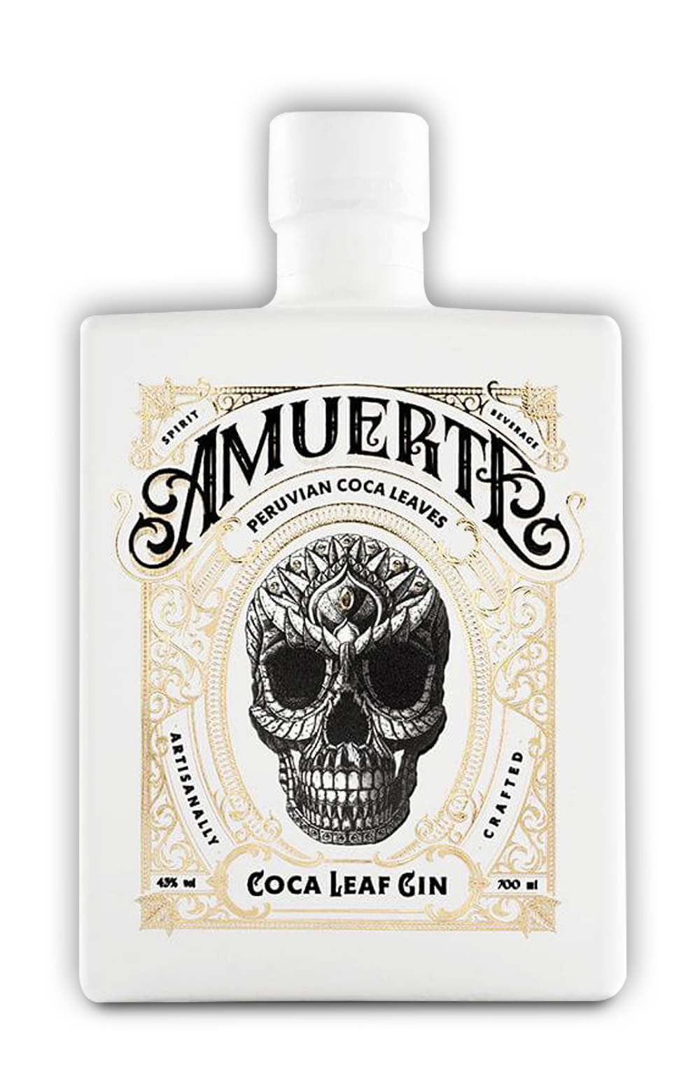 Amuerte Coca Leaf Gin White vient de Belgique et est aromatisé avec des feuilles de coca péruviennes, du citron vert biologique de Rome, du poivre de Szechuan, de la coriandre et de la cardamome. Une expérience gustative exotique complétée par une bouteille au design époustouflant et détaillé.