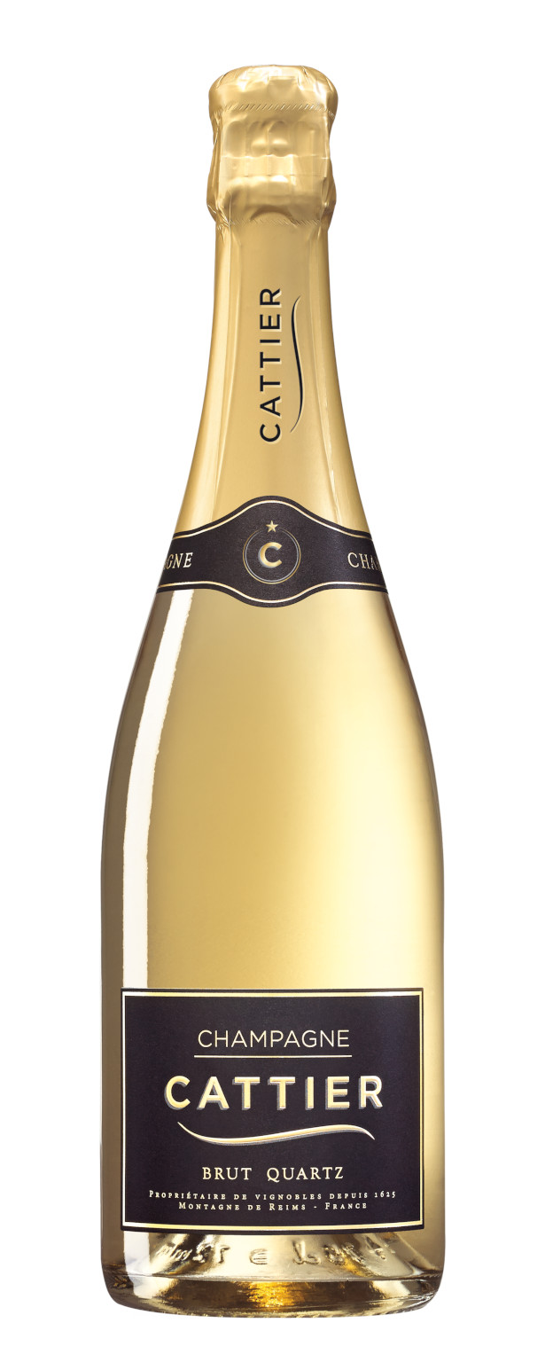 Cattier Brut Quartz est un champagne particulièrement complexe. Avec une durée de trois ans, il reste beaucoup plus longtemps sur la levure que le brut "normal" de la maison. Comme pour ce dernier, il s'agit d'un assemblage de 50% de pinot meunier, 30% de pinot noir et 20% de chardonnay. La cuvée ambrée se montre vive, ample et fraîche avec des notes florales, tropicales et des arômes de brioche.