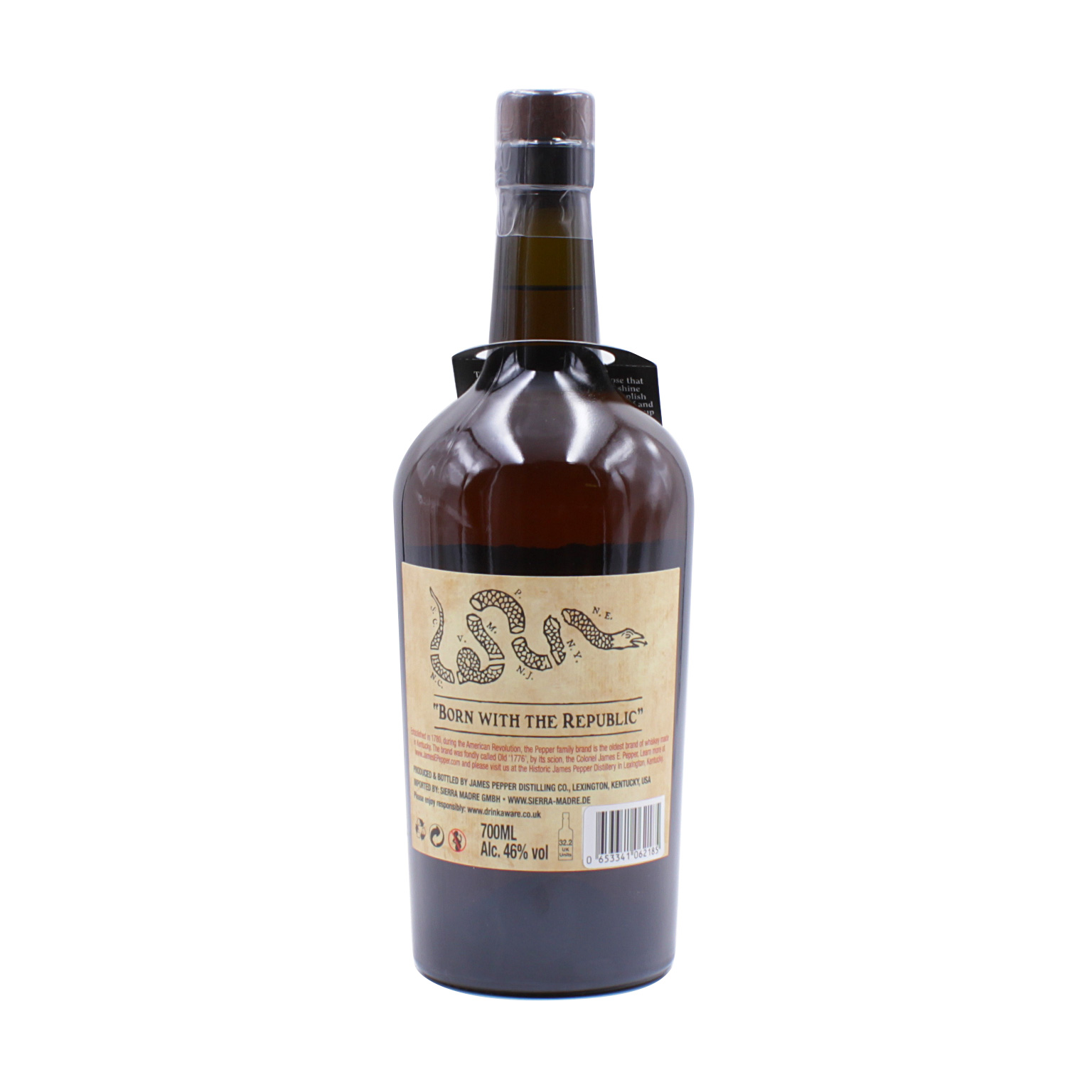 Der James E. Pepper 1776 Straight Rye wurde von der Georgetown Trading Company basierend auf einem Rezept von James E. Pepper aus dem Jahr 1776 weiterentwickelt. Er liegt einem Getreidegemisch mit 90% Roggenanteil zugrunde und gibt sich dementsprechend würzig und vollmundig. Der Gaumen wartet mit Noten von Honig, Schokolade und Nelken auf. Schmeckt am besten pur, auf Eis oder mit ein paar Tropfen Wasser.