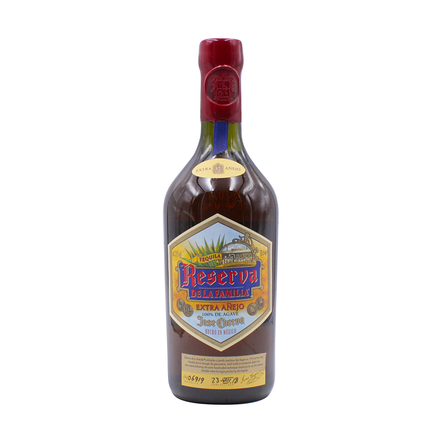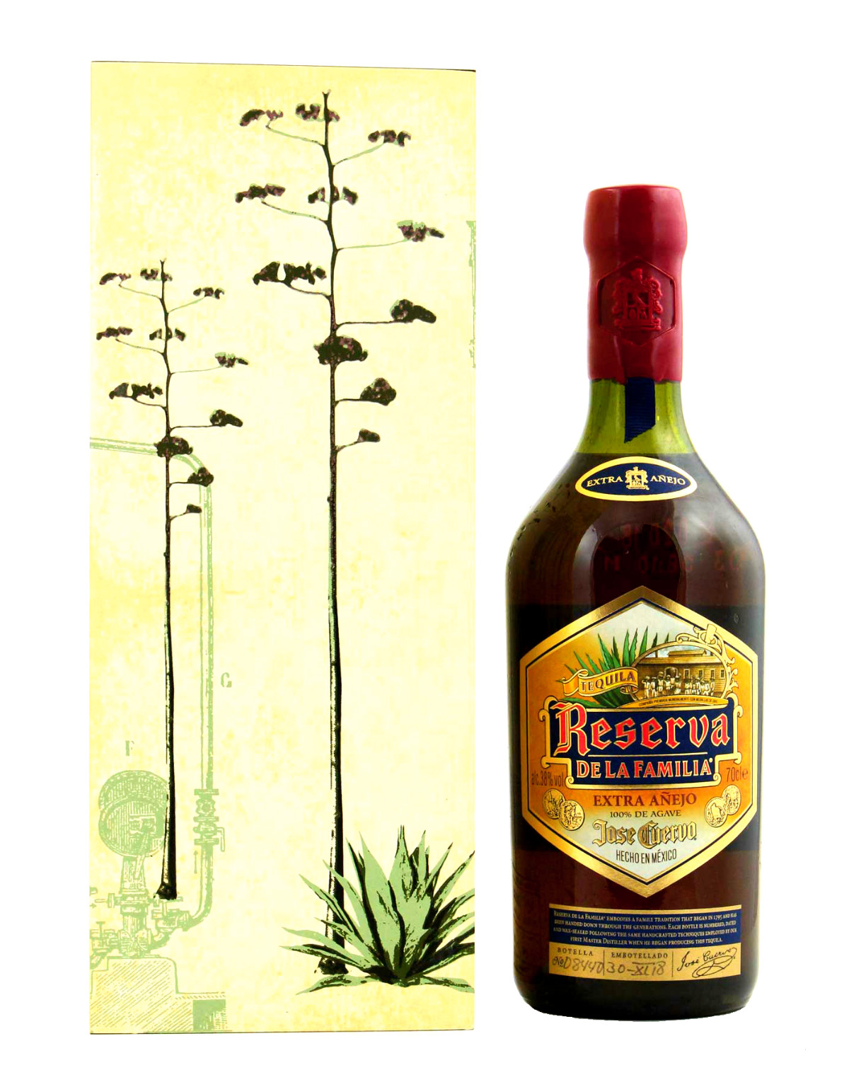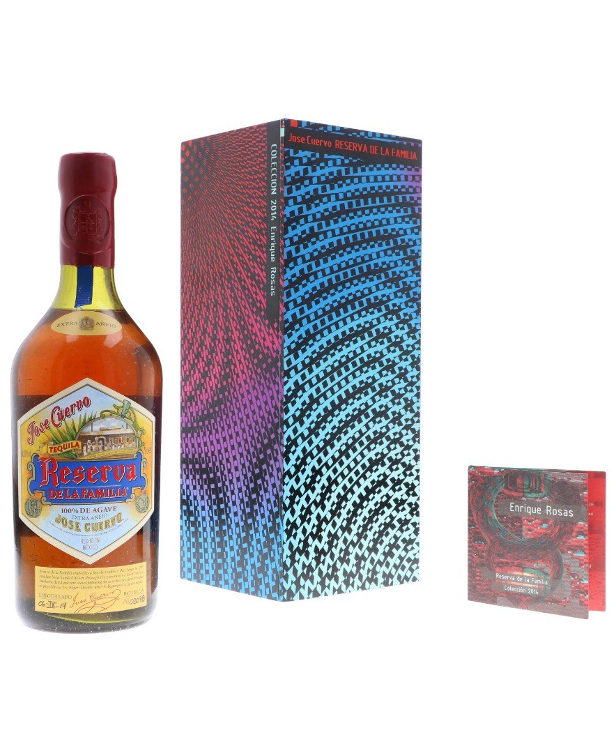 José Cuervo Reserva de la Familia reift über 5 Jahre in ausgesuchten Eichenfässern, wobei er zusätzlich mit bis zu 30 Jahre alten Brände vermählt wird.